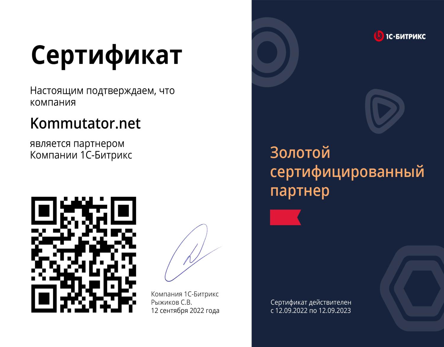 Золотой сертифицированный партнёр 1С-Битрикс