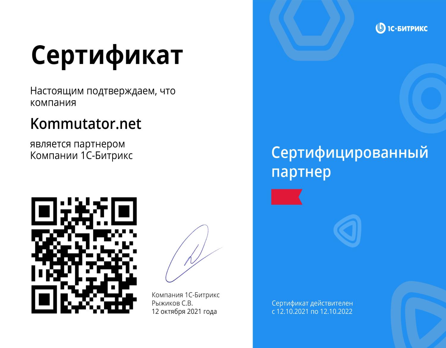 Сертифицированный партнёр 1С-Битрикс