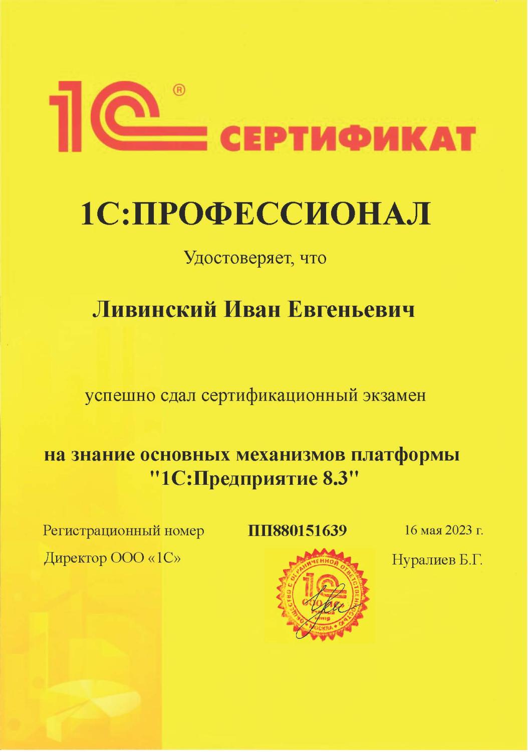 1С Профессионал - на знание основных механизмов платформы 1С Предприятие 8.3